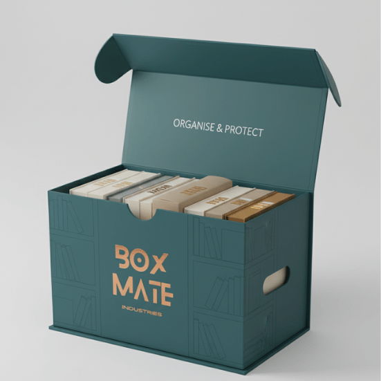 Turn any bookshelf or storage area into a stylish display with our custom-printed decorative book boxes. At Box Mate Industries LLC, we offer unique box styles in engaging shapes, colors, and formats that instantly add charm and organization to any room.