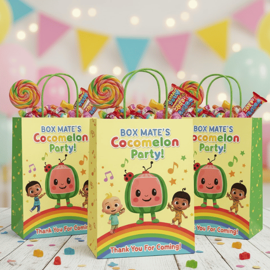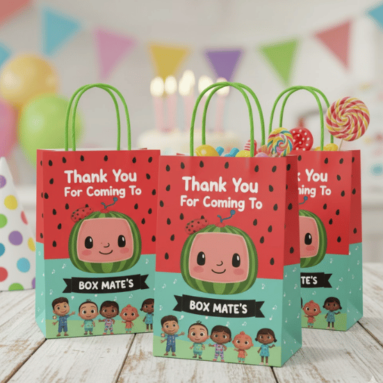 Box Mate Industries LLC offers premium Cocomelon candy bags designed to brighten any occasion, from birthday parties to retail displays. Featuring vibrant prints of your favorite Cocomelon characters and logos, these bags are crafted with top-quality, eco-conscious materials that look great and protect your sweets.