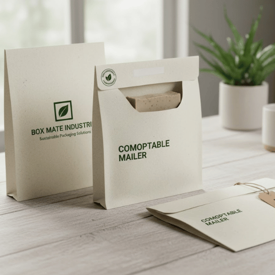 At Box Mate Industries LLC, we offer plant-based compostable mailers that serve as an excellent alternative to traditional plastic packaging. Crafted from durable and eco-friendly materials, our mailers are ideal for subscription boxes, PR campaigns, and e-commerce businesses. They reduce plastic waste without compromising on protection and durability.