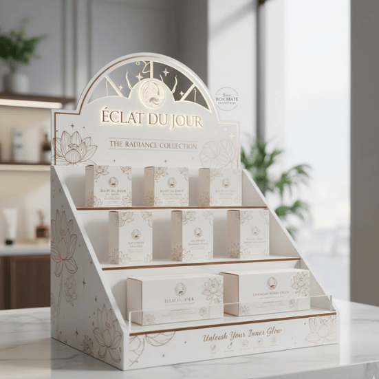 At Box Mate Industries LLC, our cosmetic display boxes are crafted to attract at first glance. With visually captivating shapes and head-turning designs, they transform any product into a luxury item. Whether you’re launching a new lipstick line or showcasing skincare essentials, our display packaging adds value through its sheer presentation. Fully customizable in style, structure, and design — including die-cut windows, custom inserts, and unique display formats — our boxes are engineered to stack securely while protecting your beauty products in style.