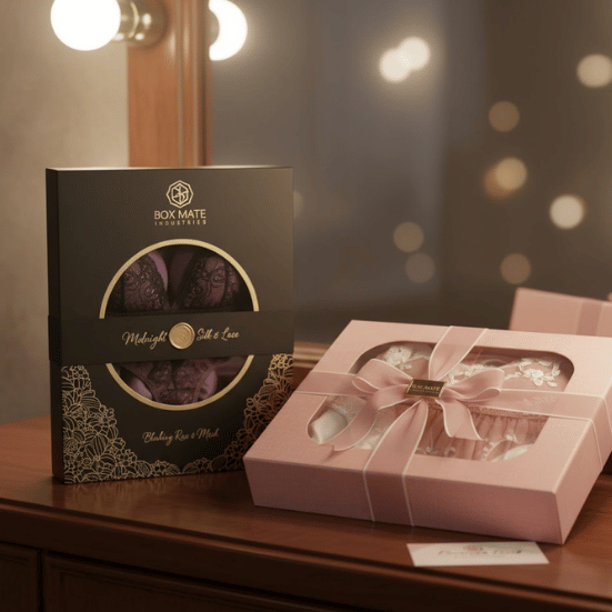 At Box Mate Industries LLC, we offer stylish lingerie packaging at competitive wholesale prices. Whether you’re just launching or already established, bulk ordering our custom boxes helps you increase your profit margin and stay ahead in a competitive market.