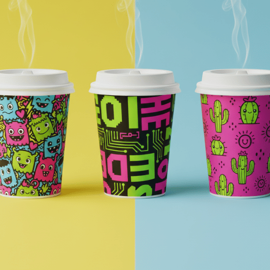 Ready to give your brand’s seasonal coffee cups a makeover? Our wide array of customization options lets you reinvent your cute paper coffee cups for holidays like Christmas, fall, or any themed campaign. Available in various shapes and sizes, with optional handles and slotted lids, our cups can feature vibrant, full-color artwork tailored to your vision.