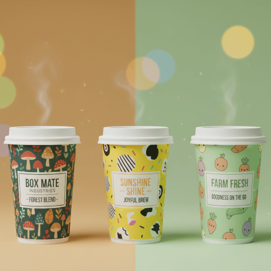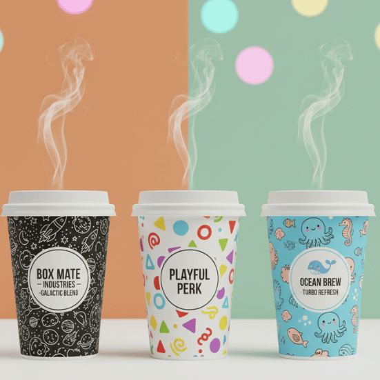 At Box Mate Industries LLC, we offer full-service packaging solutions to transform your coffee cups into a multi-sensory brand experience. From vibrant, full-color prints to eye-catching design enhancements, our packaging experts ensure every detail is perfect. Whether you’re running a holiday promotion or year-round café service, our wholesale custom cup services help you manage multiple projects seamlessly.