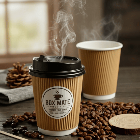 At Box Mate Industries LLC, our double wall coffee cups are designed to enhance both comfort and branding. These ripple-insulated cups feature up to four times deeper ridges than standard imitation cups, offering superior insulation and minimizing heat transfer to the hands. The result? A cozy grip and a longer-lasting hot drink.