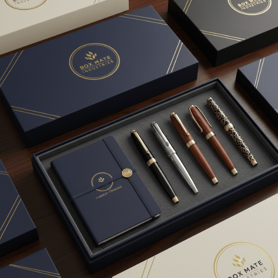 With access to top-quality stock materials and limitless customization options, Box Mate Industries LLC supplies bulk pen boxes tailored to your size, style, and shape requirements. To ensure a perfect fit and elegant presentation, foam inserts are also available with our wholesale pen packaging solutions.
