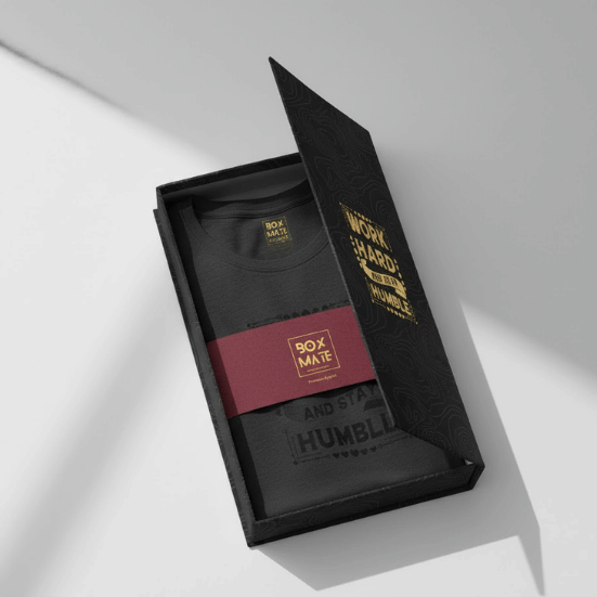 Nothing showcases your shirts better than packaging boxes with standout designs. At Box Mate Industries LLC, you have the freedom to choose from a variety of finishing options—sparkling gloss, smooth matte, or a shiny aqueous coating. Elevate your packaging even further with hot foil stamping in dazzling gold and silver, creating custom shirt boxes that captivate and give your clothing a distinct edge. Our packaging consultants are ready to help you select the perfect finishing touches to complement your shirt box designs and give your product a one-of-a-kind look.