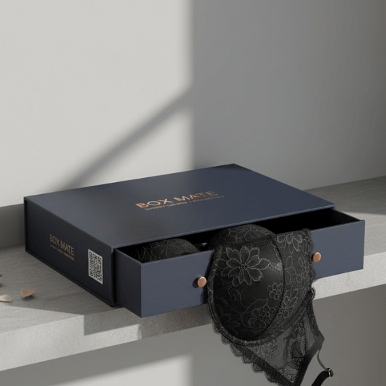At Box Mate Industries LLC, our high-quality custom undergarment boxes come in a variety of sizes designed to provide the perfect fit and superior protection for your products — whether stored in your warehouse or displayed in your retail store. What makes us stand out is our ability to fully customize these boxes with your branding elements and QR codes, turning simple packaging into a powerful brand statement while ensuring maximum safety for your items.